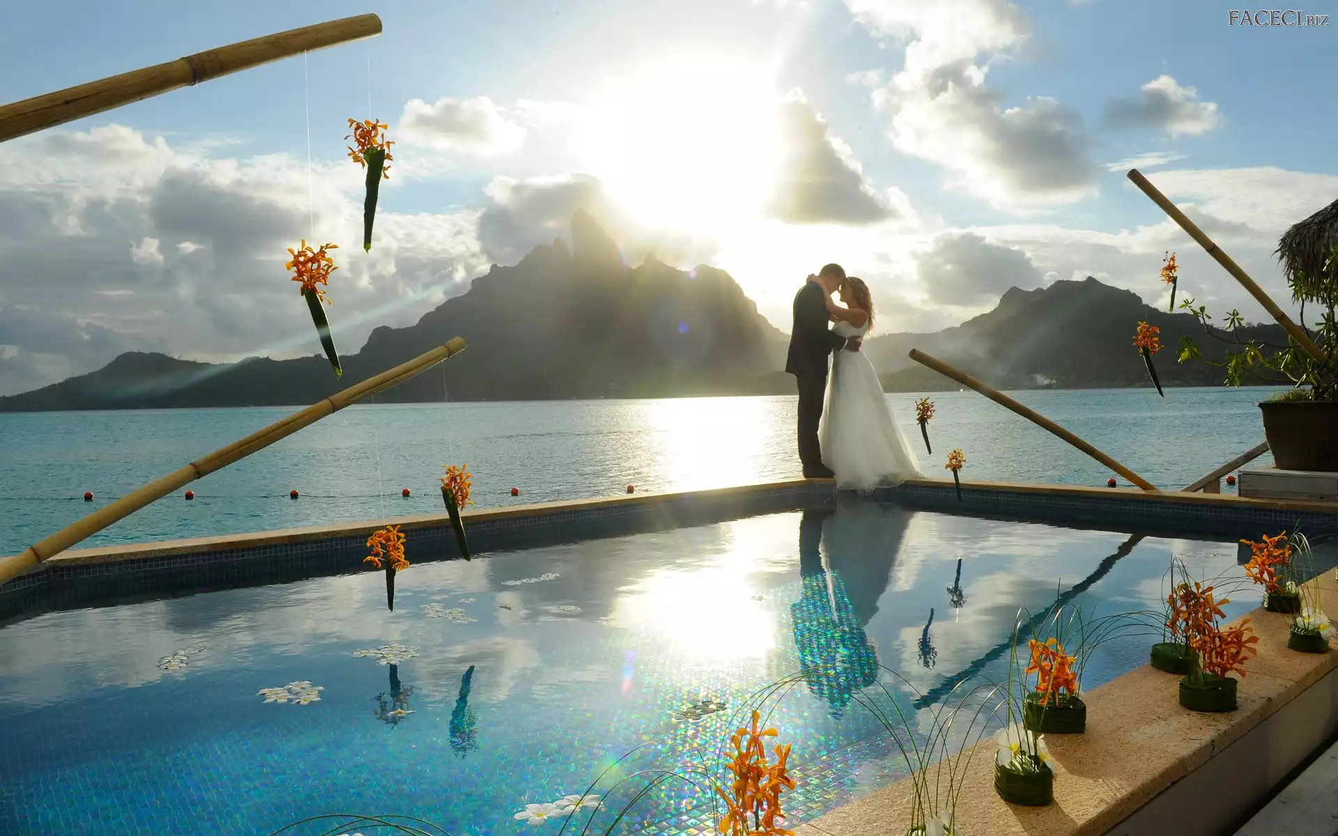 Ślubna, Mężczyzna, Murek, Jezioro, Kobieta, Suknia - faceci.biz